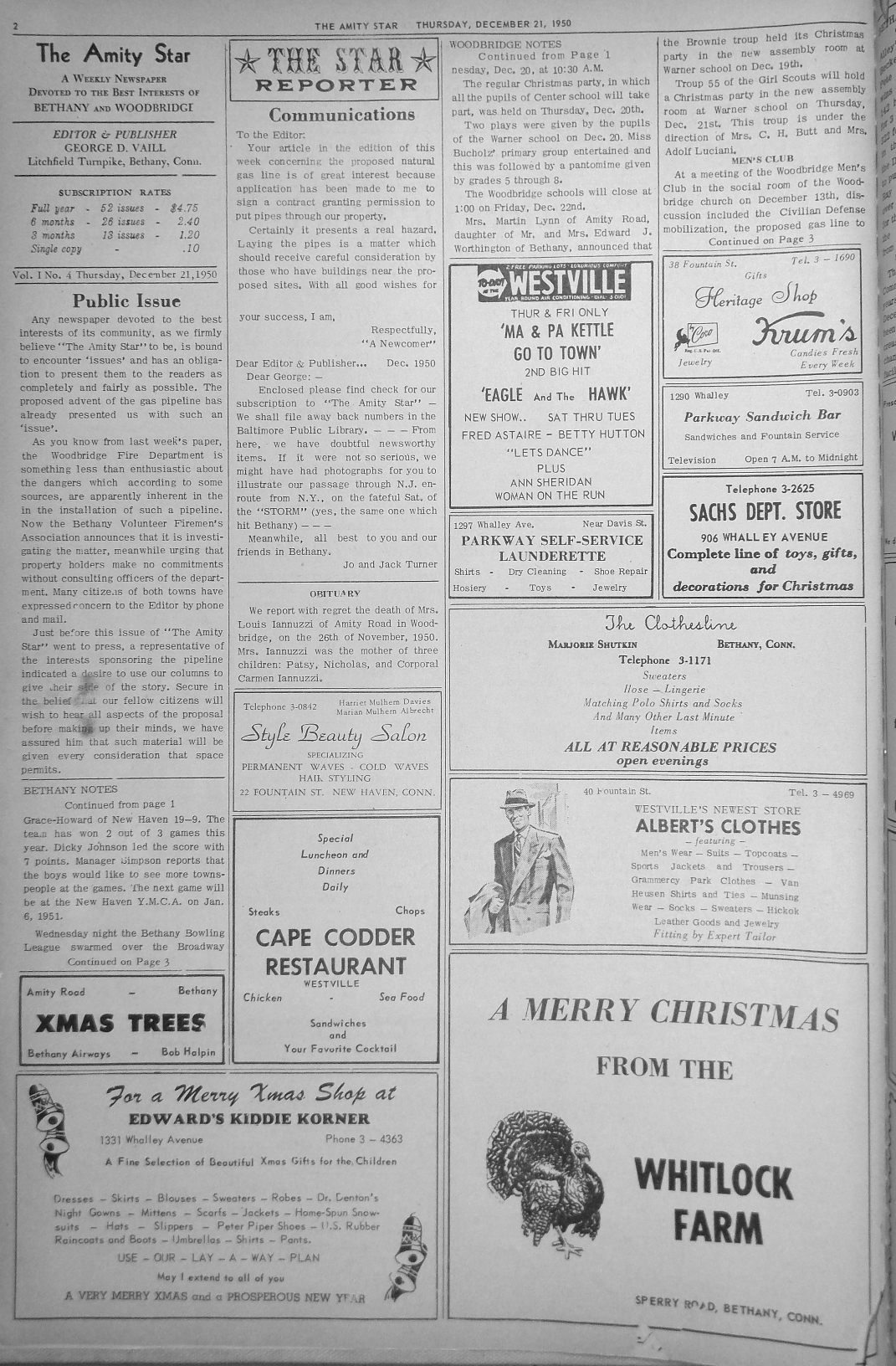 Just before this issue of "The Amity Star" went to press, a representative of the interests sponsoring the pipeline indicated a desire to use our columns to give their side of the story. Secure in the belief that our fellow citizens will wish to hear all aspects of the proposal before making up their minds, we have assured him that such material will be given every consideration that space permits.