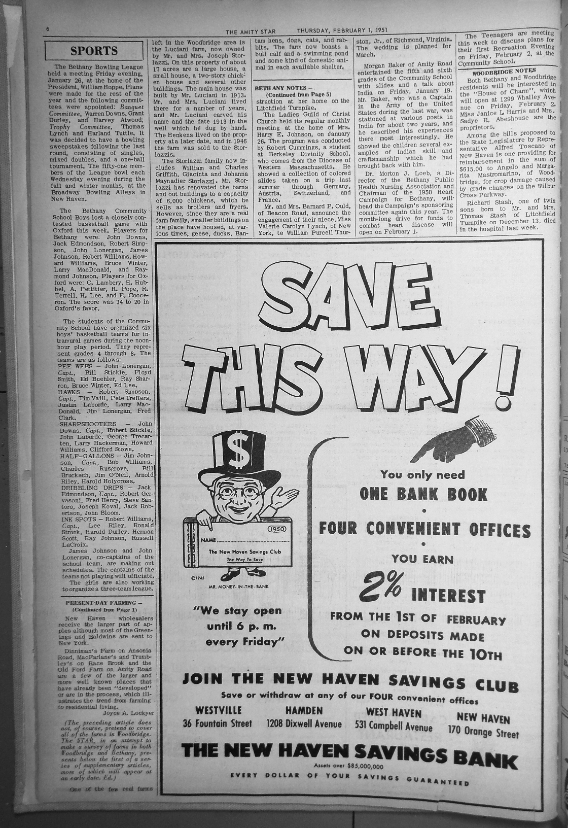 (The preceding article does not, of course, pretend to cover all of the farms in Woodbridge. The STAR, in an attempt to make a survey of farms in both Woodbridge and Bethany, presents below the first of a series of supplementary articles, more of which will appear at an early date. Ed.)
