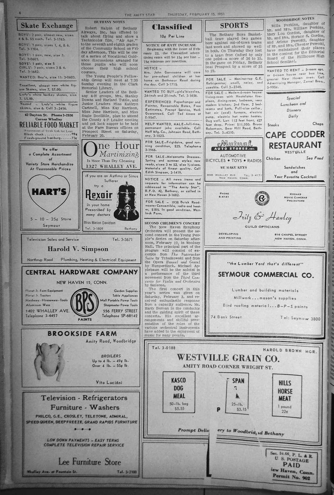 NOTICE – All news items and requests for information can be addressed to “The Amity Star”, R.F.D. #2, Bethany, or called in at New Haven 3-1682.